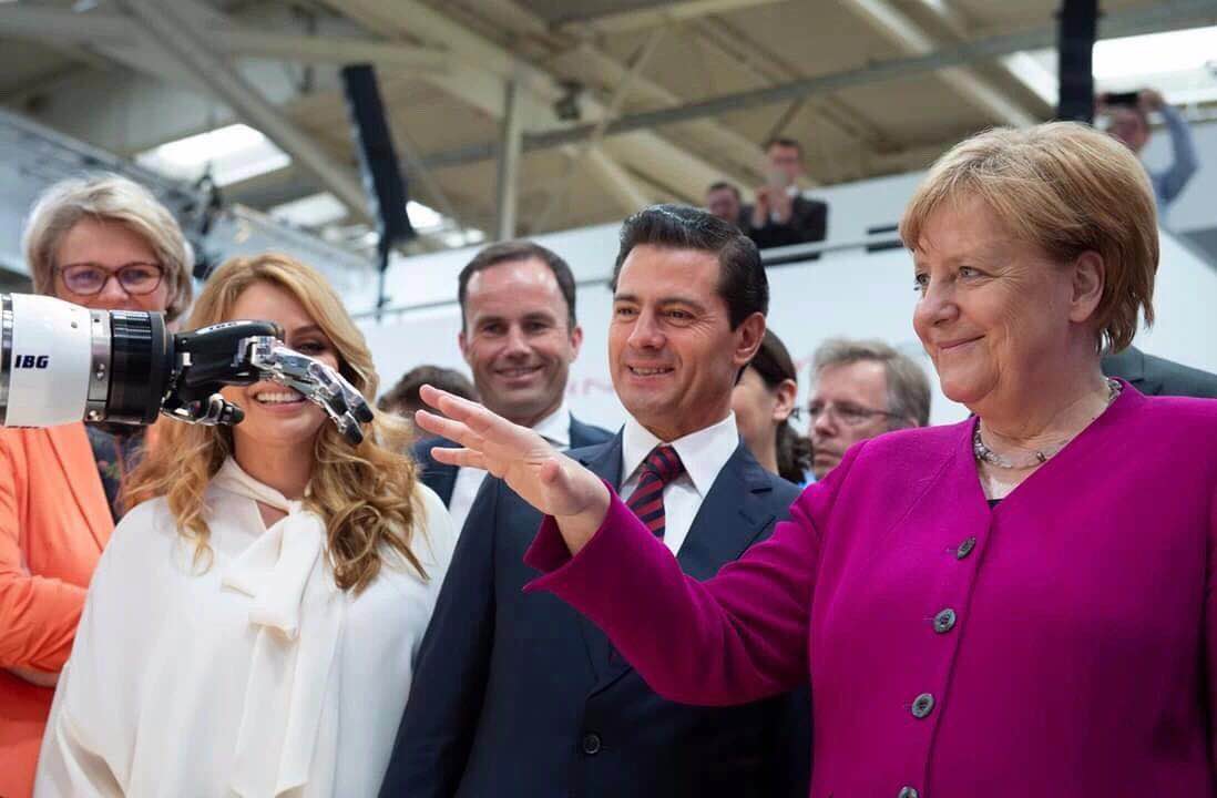 ▲德國總理默克爾(右)和墨西哥總統(tǒng)培尼亞(中)共同參觀了漢諾威工業(yè)博覽會