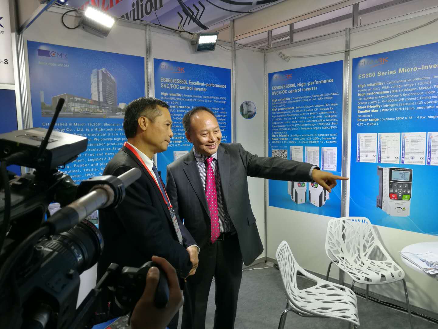 展會現(xiàn)場,深圳市寶安區(qū)區(qū)委書記姚任來到深圳市庫馬克新技術(shù)股份有限公司展臺認(rèn)真觀看,庫馬克董事長李瑞常詳細(xì)介紹道。“此次庫馬克帶來的是ES系列中低壓變頻永磁同步電機(jī)電液伺服系統(tǒng)解決方案,核心是由庫馬克研發(fā)中心開發(fā)新一代高性能磁場定向矢量控制高中低壓變頻器和防爆高壓變頻器,其特點(diǎn)負(fù)載電流小,響應(yīng)速度快,穩(wěn)速精度高;展現(xiàn)出了工業(yè)4.0與物流4.0的結(jié)合,