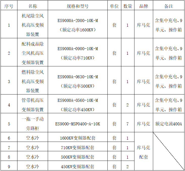 ● 空水冷變頻器裝置涉及的全部水冷裝置的風(fēng)管、濾網(wǎng)等需供貨,提供具體數(shù)量和安裝位置等土建資料。