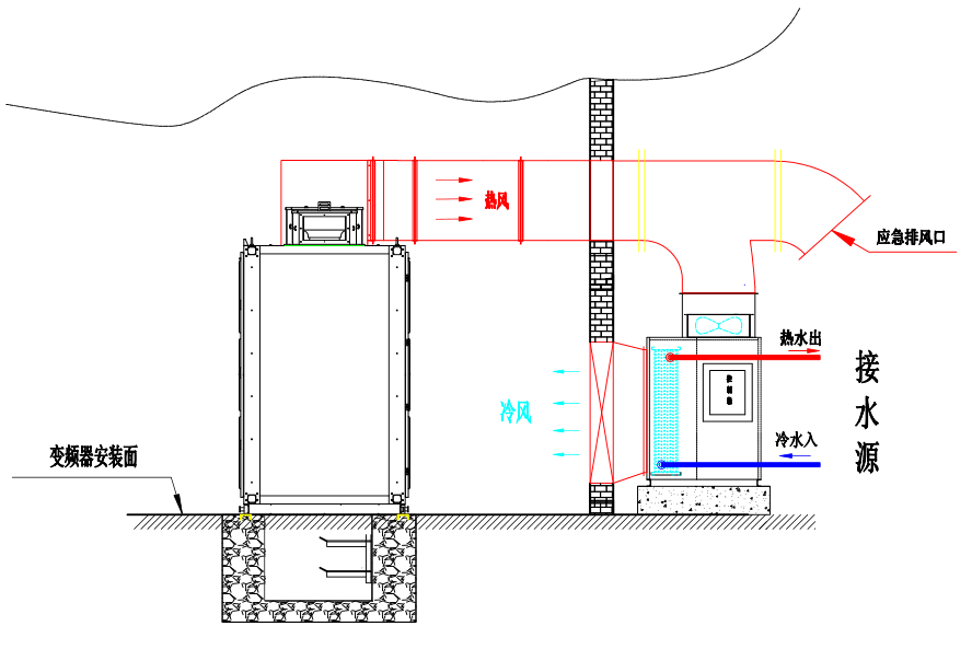 ● 每套高壓變頻器排氣口安裝一套空水冷系統(tǒng),及配有應(yīng)急排風(fēng)閥。