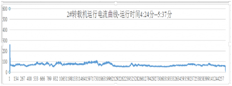 數(shù)據(jù)分析:此變頻器采用最新研發(fā)的轉(zhuǎn)矩板控制系統(tǒng),可以更好地平衡運(yùn)行電流;轉(zhuǎn)載機(jī) 2#電機(jī),最大啟動(dòng)尖峰電流為262A,平均運(yùn)行電流為67A, 設(shè)備運(yùn)行平穩(wěn)滿足生產(chǎn)要求。