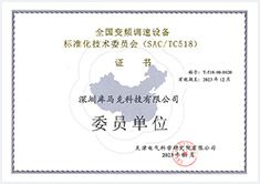 全國變頻調(diào)速設(shè)備標準化技術(shù)委員會(SACTC518)委員單位證書